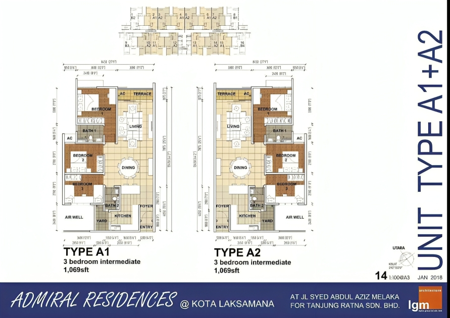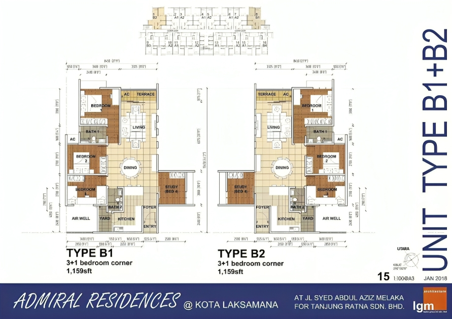 Unit sizes ranging from 1,069 ft² to 1,159 ft²,providing 2 to 3 carparks